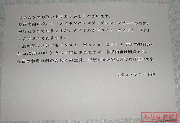 ファンクラブでは、映画本編とメイキングを1本のビデオに収録して通信販売した。